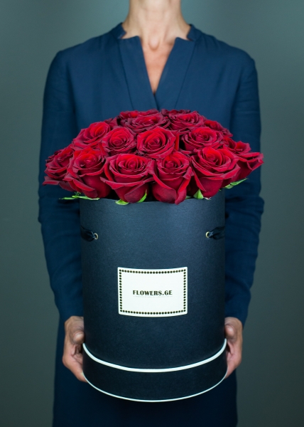 25 წითელი ვარდი შავ ყუთში