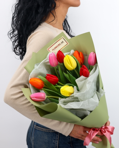 თაიგულები კონუსის ფორმის შეფუთვაში