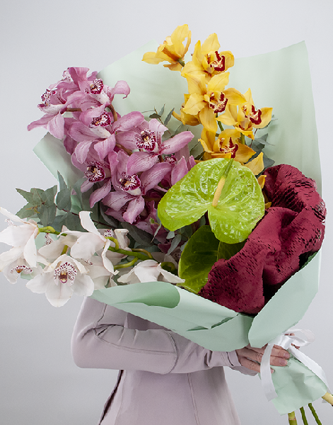 თაიგულები კონუსის ფორმის შეფუთვაში