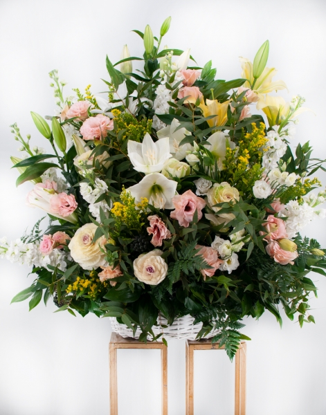 სამგლოვიარო კომპოზიციები კალათში