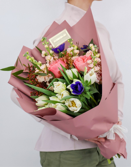 თაიგულები კონუსის ფორმის შეფუთვაში